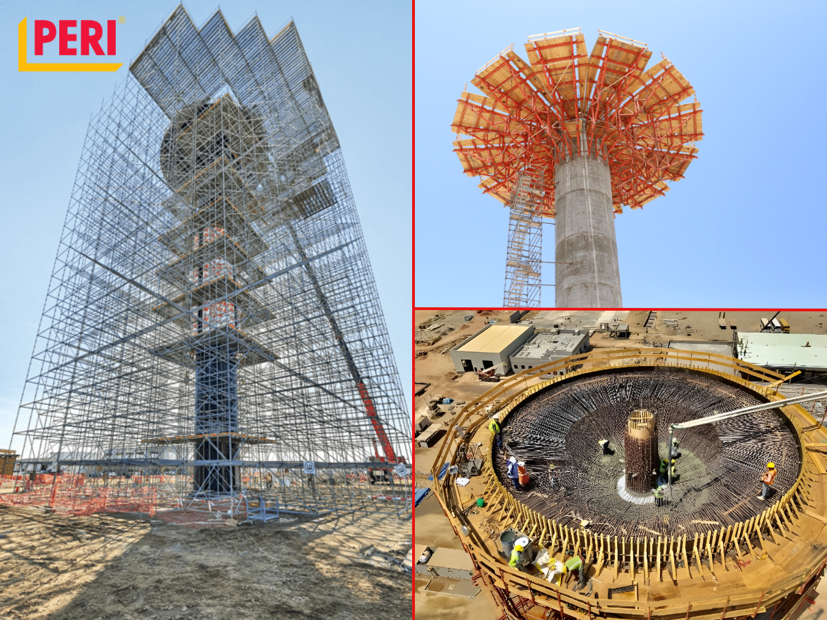 Elevated tanks need support structures that can handle substantial loads while maintaining stability. PERI’s shoring systems play a key role here, especially in maintaining structural alignment during construction.